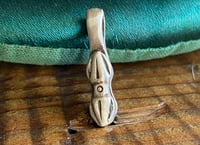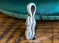 Being offered is a very unique and rare Bhum Counter is the shape of a Dorje (also known as a Varja). This hard to find Bhum is made from 999 pure silver and has a very nice antique look to it. These are very well made with beautiful detail. These are used to mark location on your Mala and keep tract of tens of hundreds of thousands and millions of mantra. These are often referred to as million marker counters.