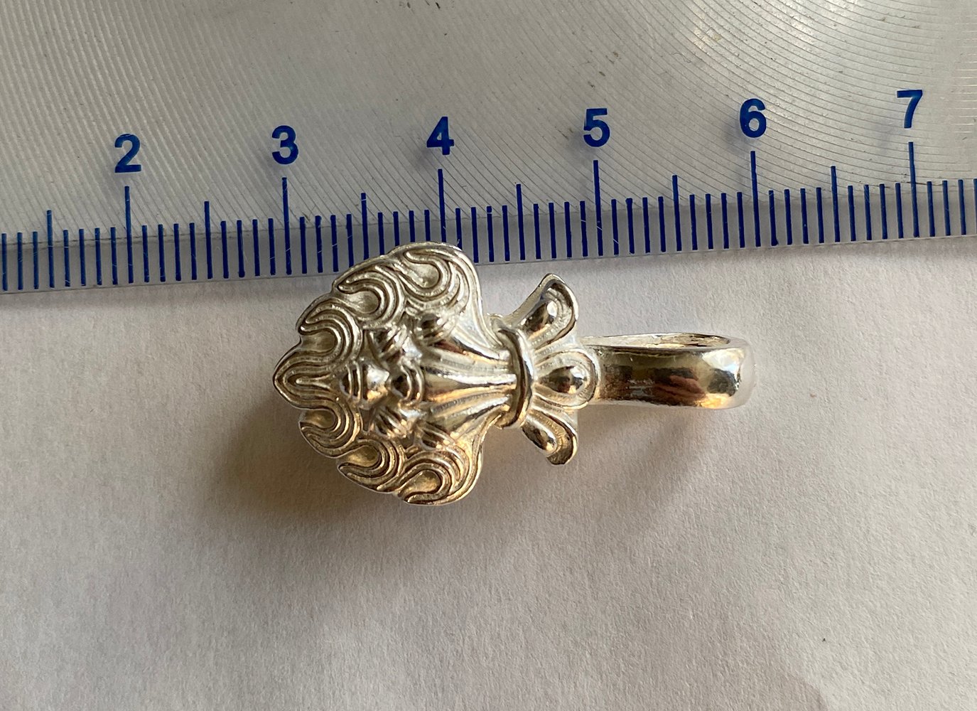 The size is 29mm long by 1mm wide with a total weight of 5.3 grams. This Bhum Counter will fit most Mala and best for medium to large Malas. The luster of these counters is amazing. Very well designed with excellent ornate details!