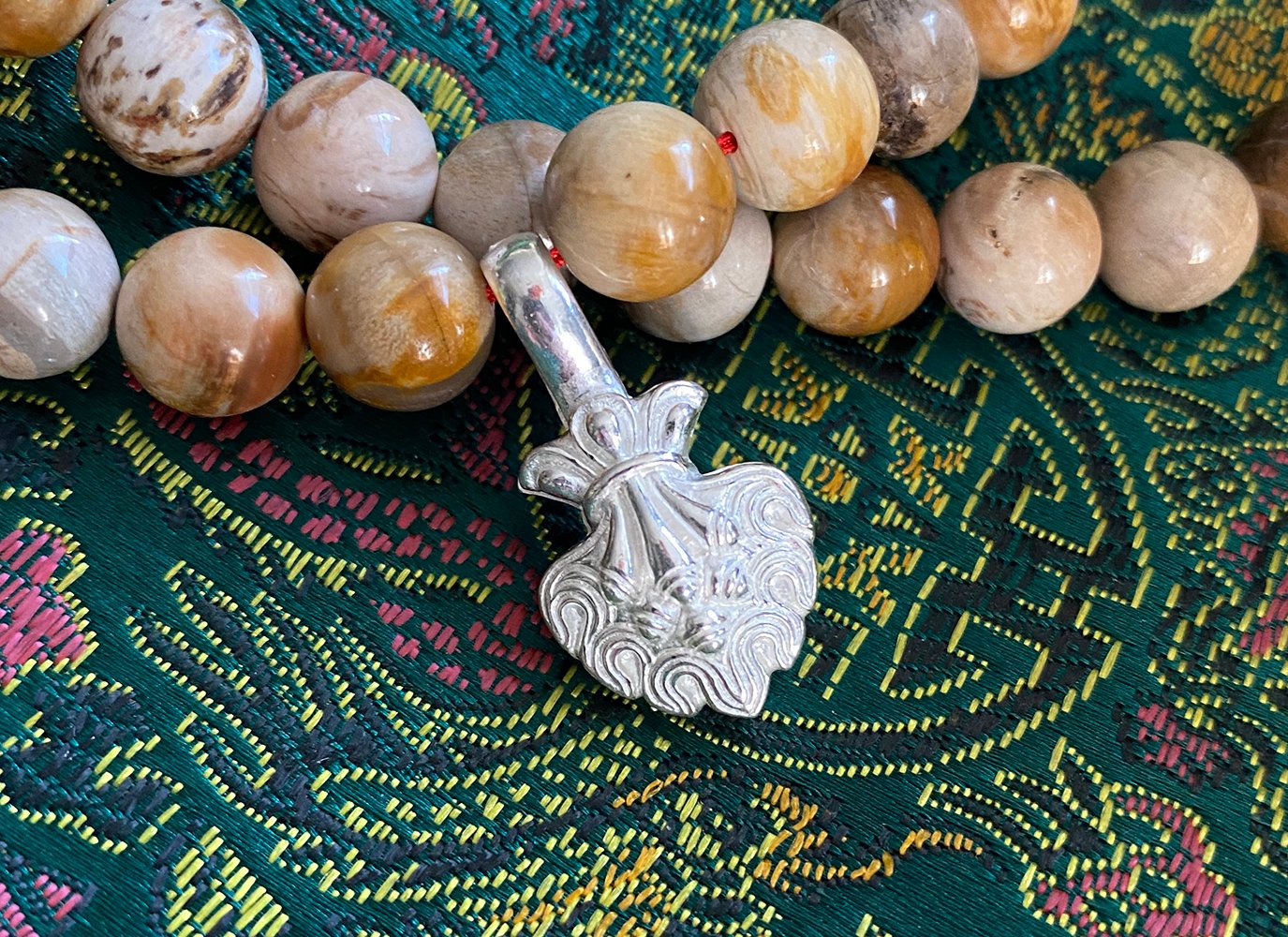 For reference and sizing perspective one is placed on an 10mm Petrified Wood Mala. The Mala is not included as part of this sale. If you are interested in Buddhist Prayers Beads, please see my listing of Buddhist Malas.