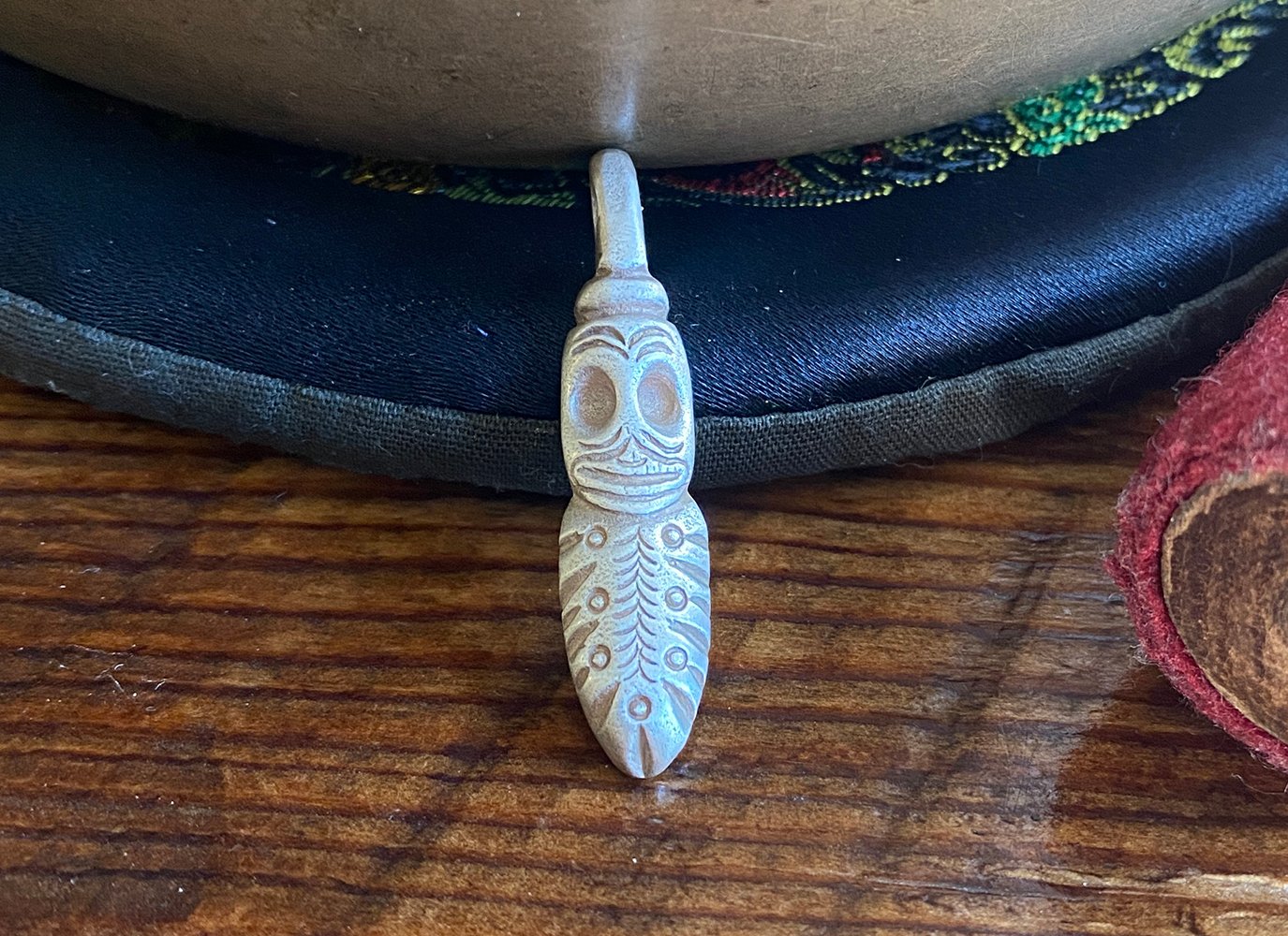 The craftsmanship on this item is excellent with fine details in the face and body. It weighs a total of 7.20 grams. it is 39mm or 1.53 inches long and a slim 9mm or 0.35 inches wide. This elegant pendant is long and narrow.