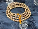 I picked up these yak bone skull carved Citipati beads from a dear friend and shop owner in the Boudhanath Stupa area of Kathmandu, Nepal this past March 2024. After I returned, I laced it using two cords of 1mm black nylon cord for strength and longevity. The yak bone guru bead and the matching spacer beads have been waiting for just the right mala.