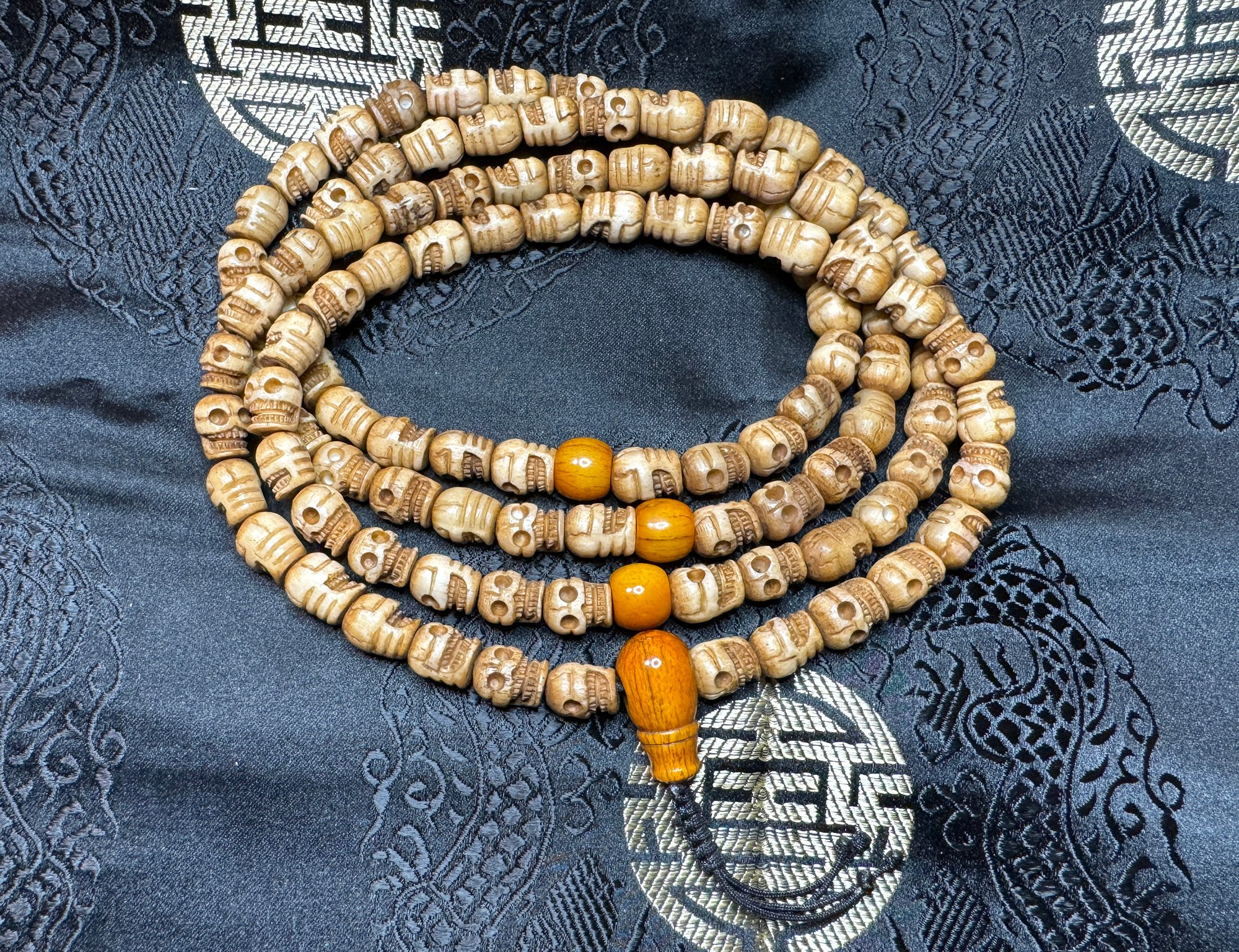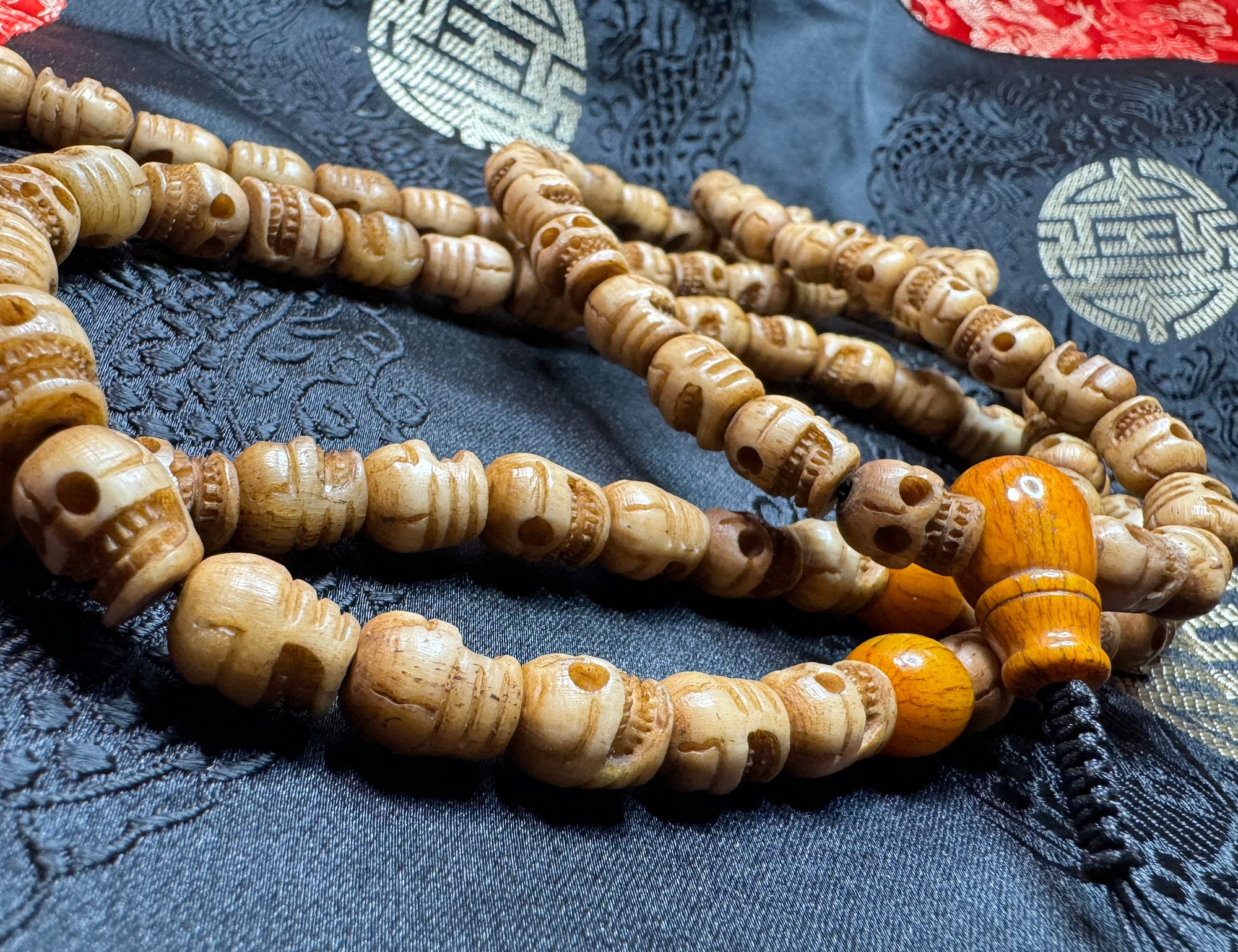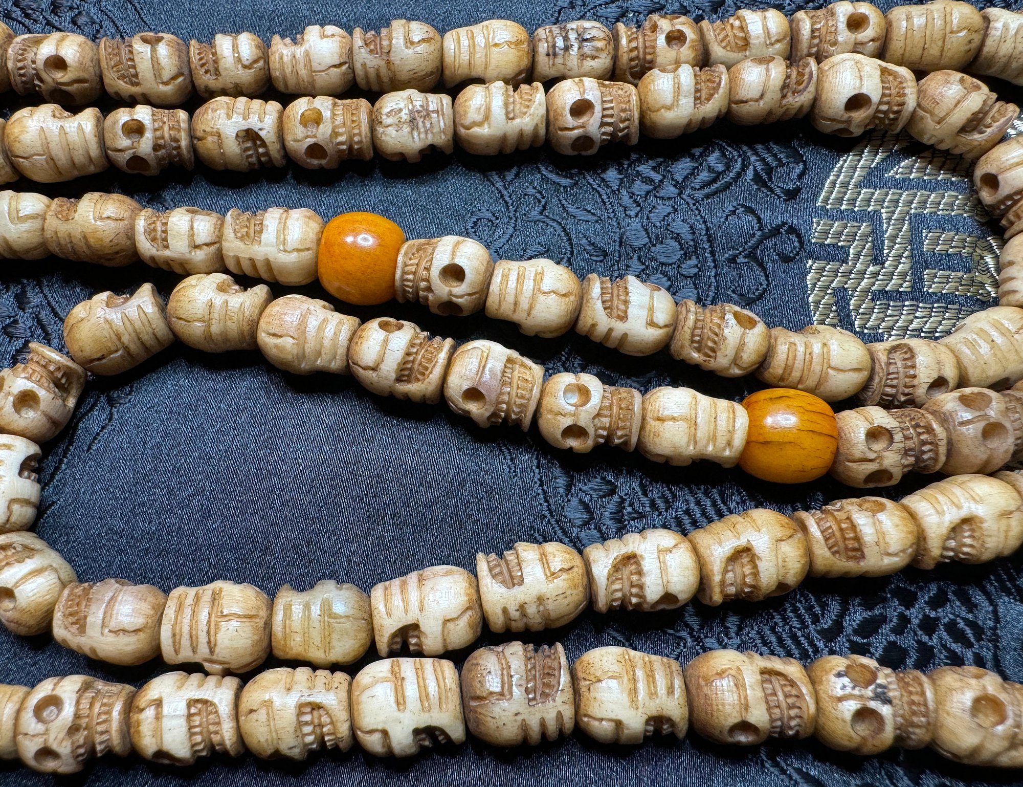 Yak Bone Skull Carved Citipati Mala • Guru Bead & Spacer Beads • Lrg • Exceptional Quality